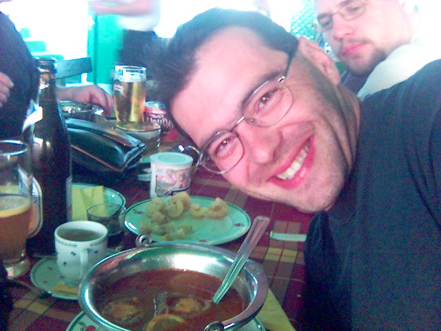 FcS közös fotója a halászlével (háttérben az irígykedő Vix-szel)