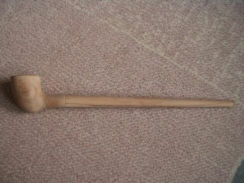 Küldök egy képet a jelenlegi állapotról. Engem békepipára emlékeztet, de persze ez csak köztes állapot. Még vékonyabb lesz a szár és a vége enyhén meg lesz hajlítva gőzöléssel.