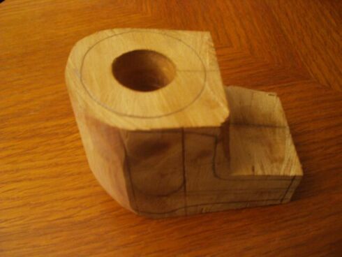 itt már a füstjárat is ki van fúrva és kezd pipa formája lenni a dolognak.