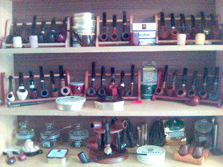 Csak egy kis ízelítő a zsákmányból: Dunhillek, Savinellik, Caledonian, Peterson U. flake, Stanislawok (meglepően korrekt minőségű cseh dohányok, csak latakiás 3 féle van nekik). A bőség zavara... Mit hagyjak ott... Mindent amit szeretnék úgy sem vehetek meg, mert rámenne a családi vagyon. Pipát sem vettem, nagy a választék, de szerintem nagyon drágán adják, különösen a dohányáraik fényében.